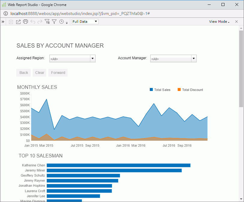- Browse to a web report, for example Sales by Account Manager Report.wls, then select the report name.