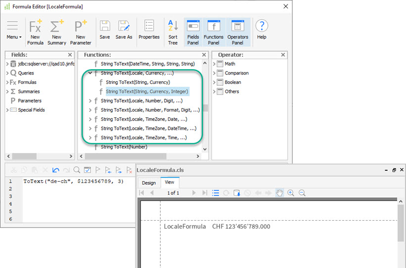 - You can now call a set of functions in your formulas to convert Currency, Number, Date, DateTime, and Time data to strings based on specified locales.