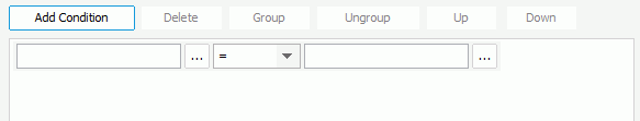To group some condition lines, select them and select Group, Designer then adds the selected condition lines in one group and applies them as one line of filter expression (you can also group conditions and groups together); to take out any condition or group from a group, select it and select Ungroup; to adjust the priority of the condition lines, select it and select Up or Down; to delete a condition line, select it and select Delete.