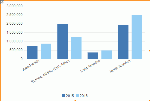 on the toolbar. - Right-click Asia-Pacific on the category axis, and select Go to By Value on the shortcut menu. Server displays a submenu and lists the same items as those of Go To.