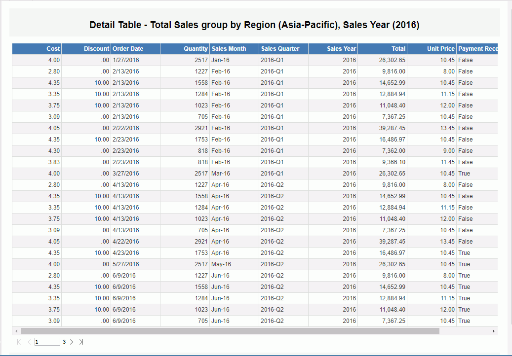 In most cases, the default detail table may not well satisfy your requirements. Web Report Studio provides you with the option to customize the detail table by your own.